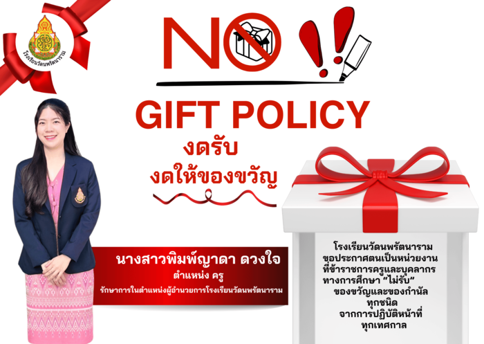 ประกาศเจตนารมณ์นโยบาย No Gift Policy จากการปฏิบัติหน้าที่